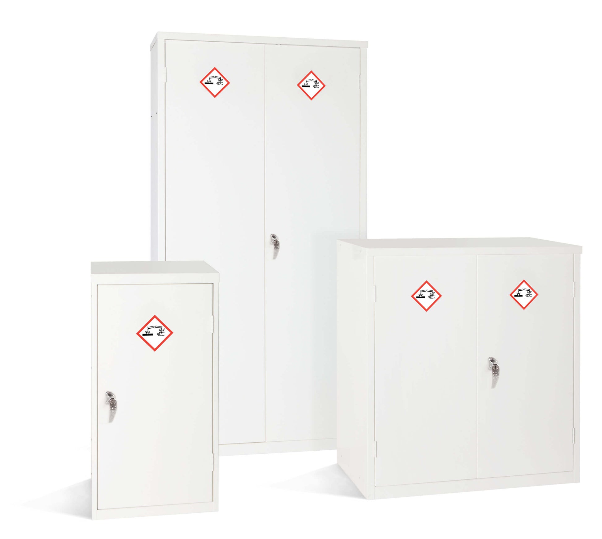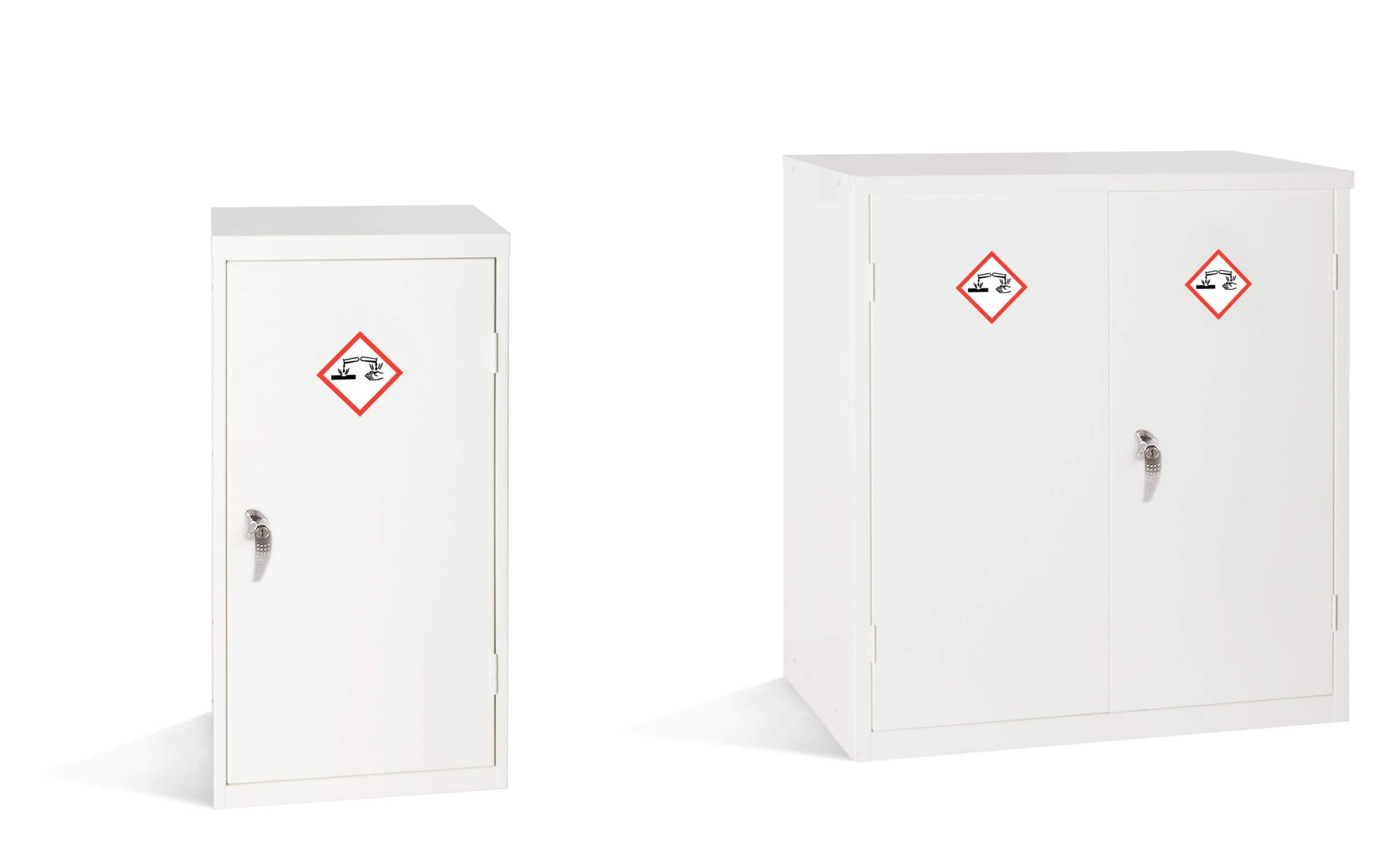 Acid Safety Cabinets are manufactured to the same high specification as Dangerous Substance cabinets providing secure contained storage of hazardous liquids. Units are polyester powder coated White RAL 9010.